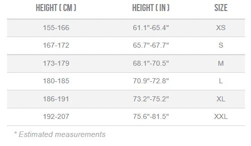 - XL (186 – 191cm)